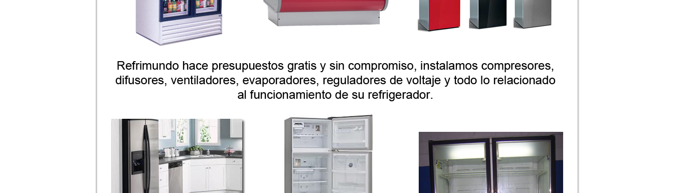 Reparacion de refrigeradores, domesticos y comerciales de todas las marcas,Refrimundo hace presupuestos gratis y sin compromiso, instalamos compresores, difusores, ventiladores, evaporadores, reguladores de voltaje y todo lo relacionado al funcionamiento de su refrigerador. |